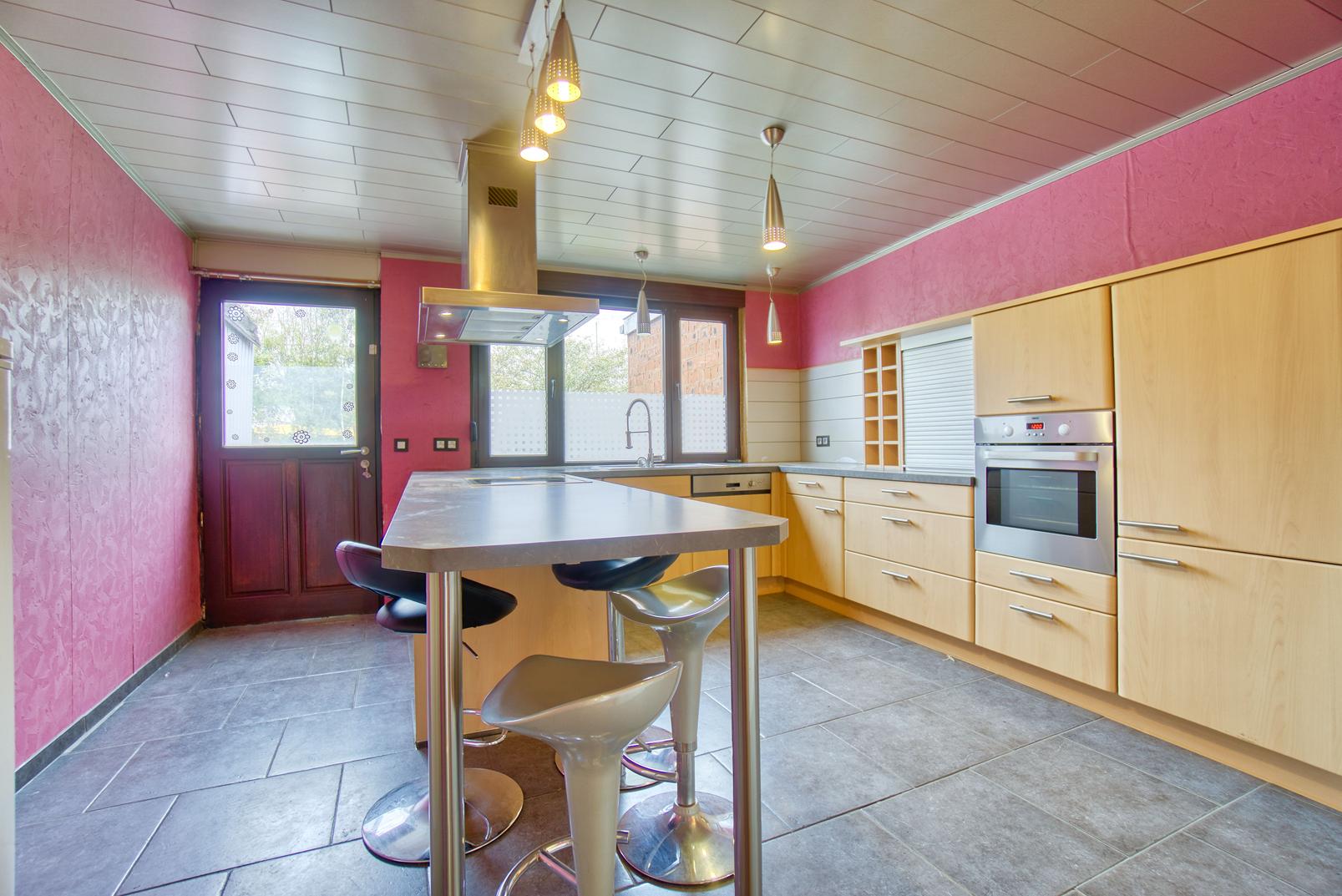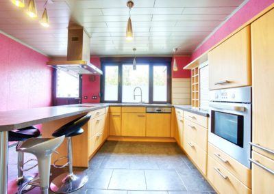 Annexe refaite en 2019 dont la cuisine avec ilôt pour déjeuner (taque vitro, hotte, four, frigo mais aussi machine à lav + séchoir) : nouveaux châssis, toit, isolation.