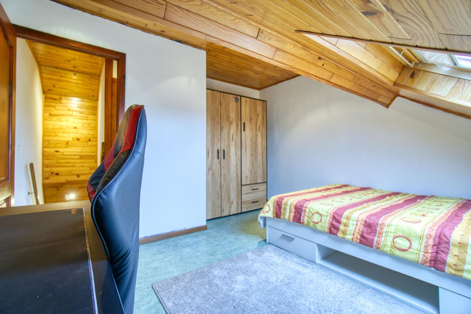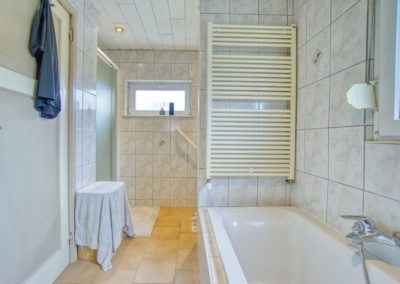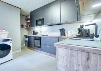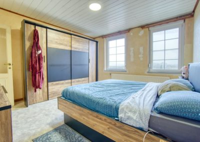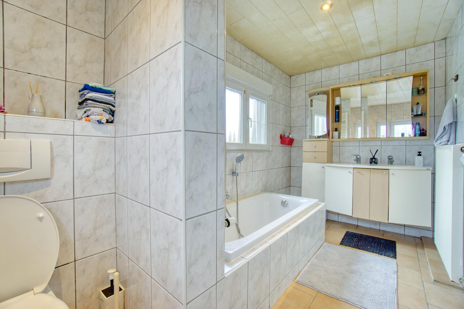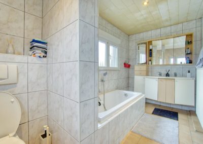 Le rez-de-chaussée se compose d’un lumineux salon – salle à manger d’environ 30 m² ainsi que d’une cuisine entièrement équipée (2025). L’étage propose trois chambres à coucher de 16 m², 13 m² et 12 m², ainsi qu’une salle de bain complète avec baignoire et douche.