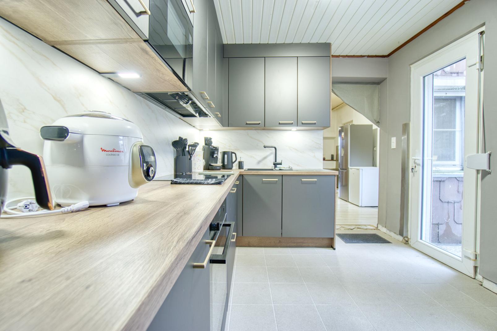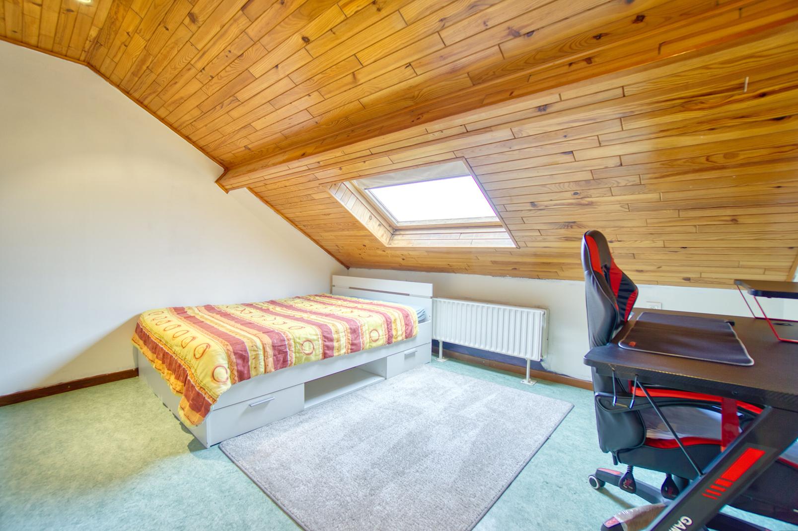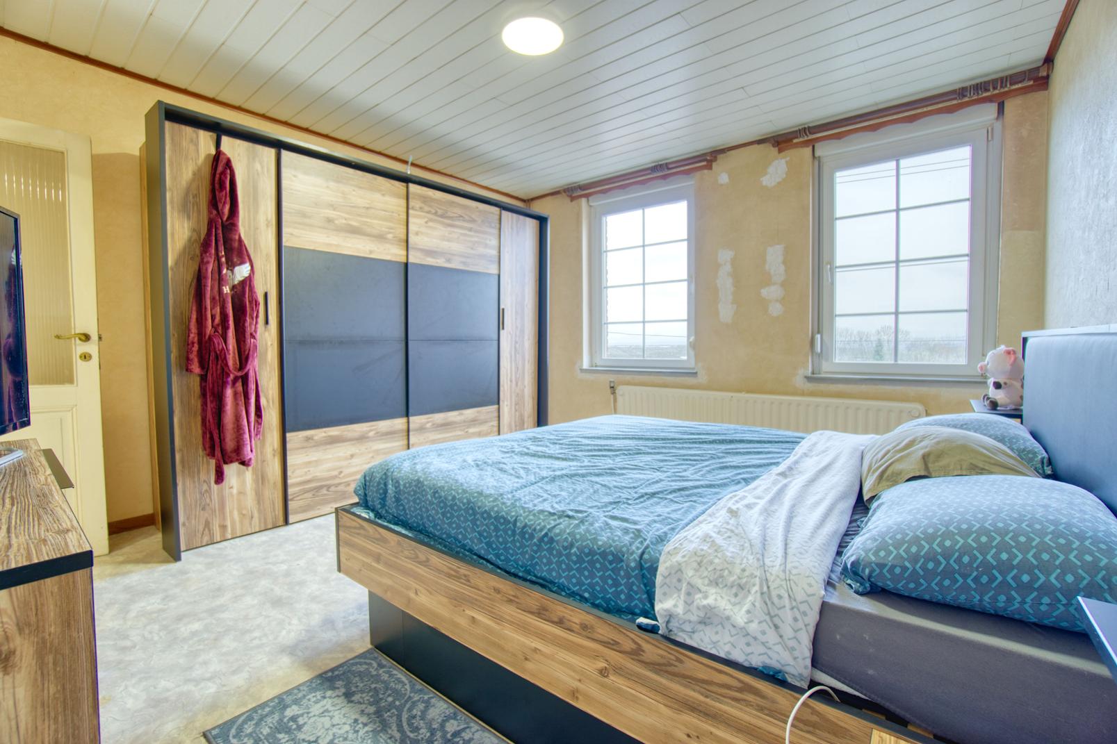 Le rez-de-chaussée se compose d’un lumineux salon – salle à manger d’environ 30 m² ainsi que d’une cuisine entièrement équipée (2025). L’étage propose trois chambres à coucher de 16 m², 13 m² et 12 m², ainsi qu’une salle de bain complète avec baignoire et douche.